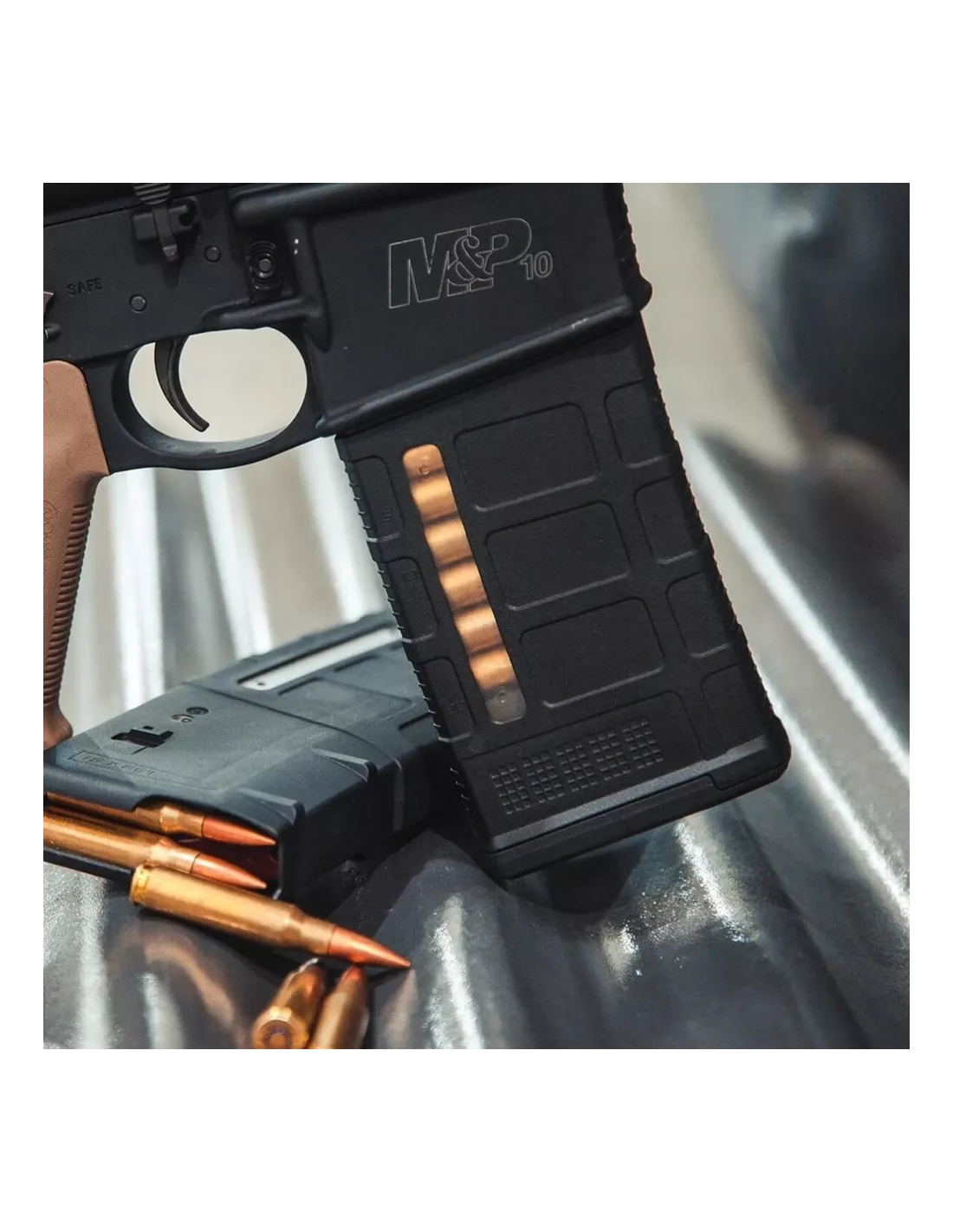 - Flared floorplate, ribbed gripping surfaces, and aggressive front and rear texturing for secure handling and rapid magazine changes