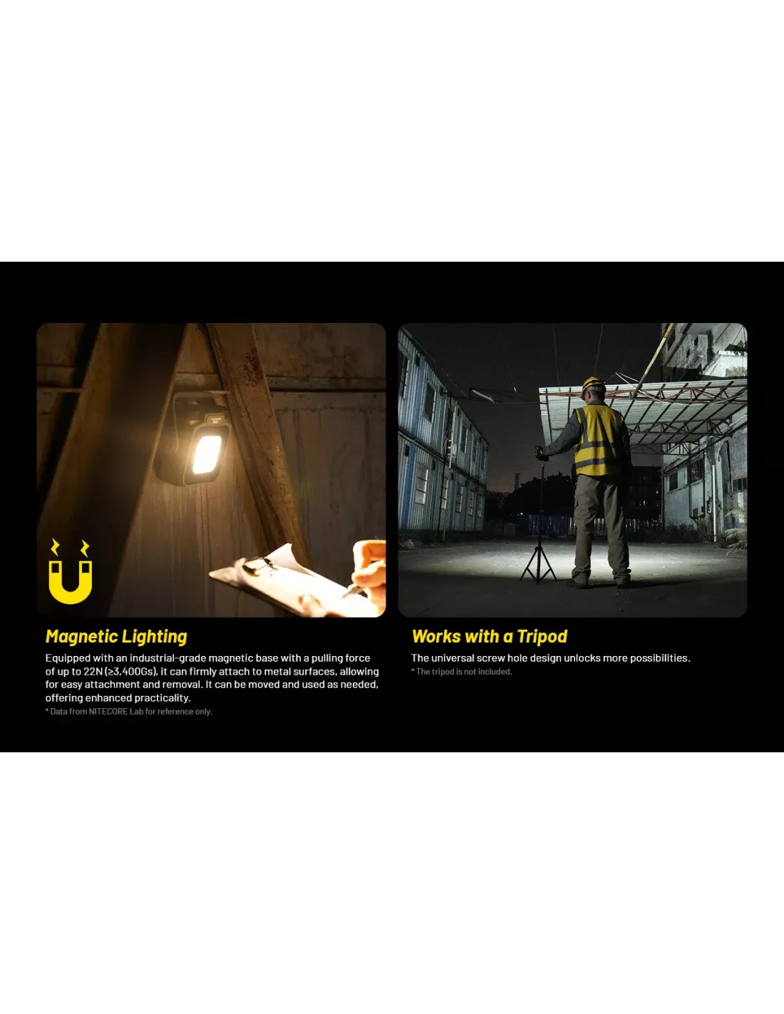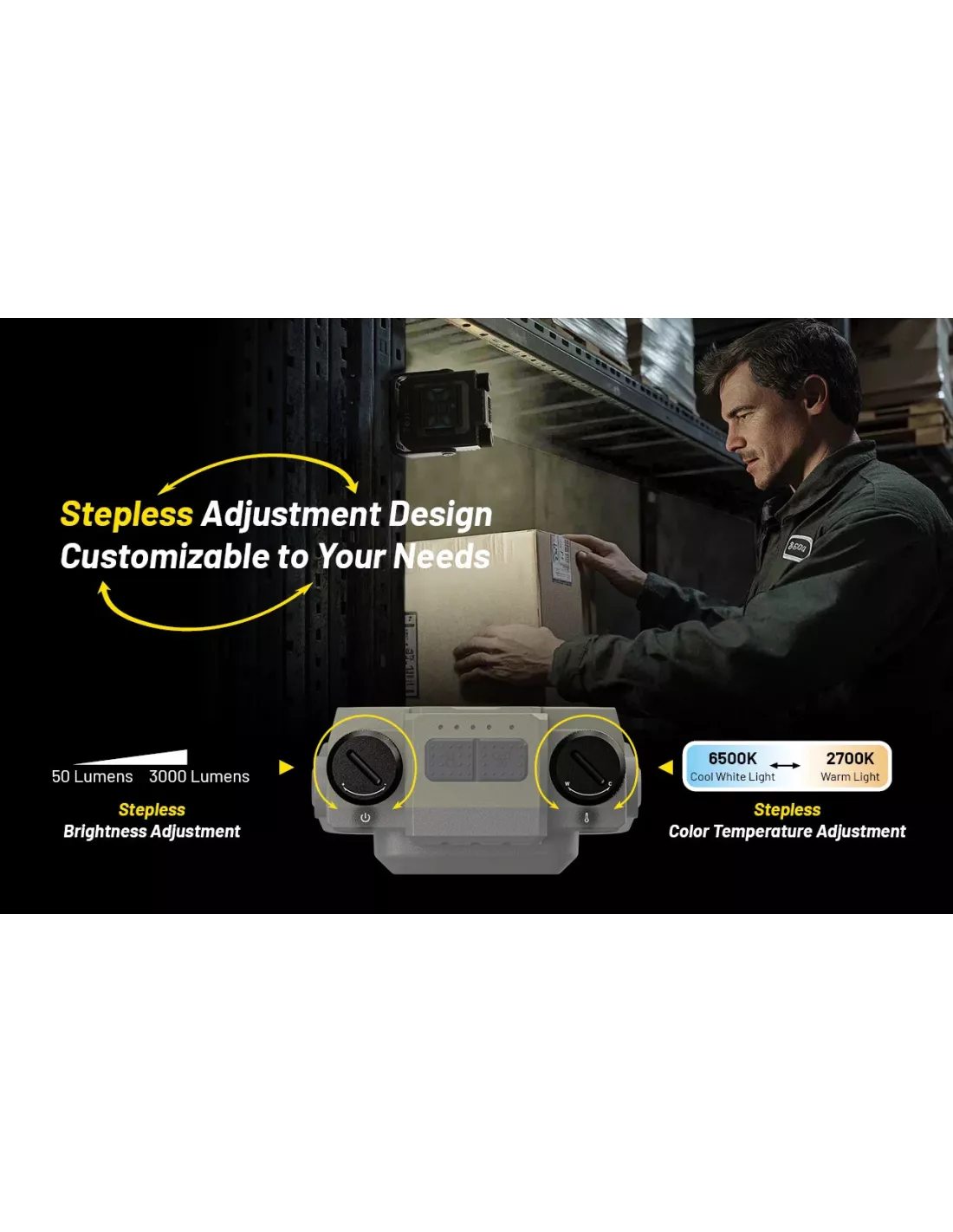 A standout feature of the NWL30 is its dual-knob control interface, which allows you to easily adjust both brightness and color temperature to match your surroundings and preferences. For flexible placement and hands-free use, it includes a 360-degree rotating magnetic handle and is also tripod compatible, making it easy to mount, hang, or position exactly where needed.