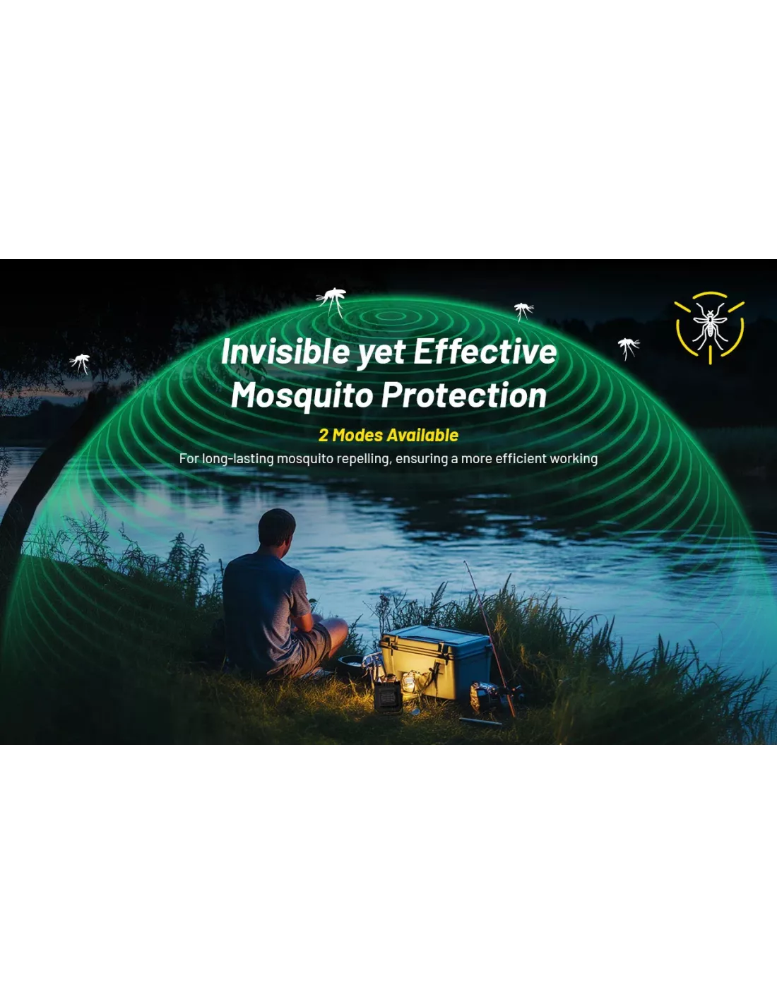 The third major function is its integrated electronic mosquito repeller, designed to improve comfort during time spent outdoors. It uses standard mosquito repellent mats and offers both Low and High repelling modes. In Low mode, it creates a protection zone of up to 11 feet with a runtime of 17.5 hours, while High mode expands coverage to up to 16 feet with a runtime of 12.5 hours. This makes it a clean and practical alternative to sprays, lotions, and messy creams.