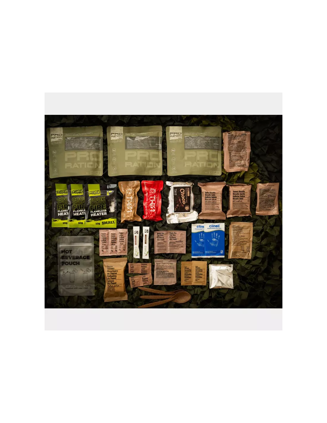 Menu II delivers three ready-to-heat main meals, energy-dense snacks, and the small essentials you actually end up needing (coffee/tea, wipes, utensils). Heat your meals without a stove or open flame using the included flameless heating pads—just follow the instructions on the pack.