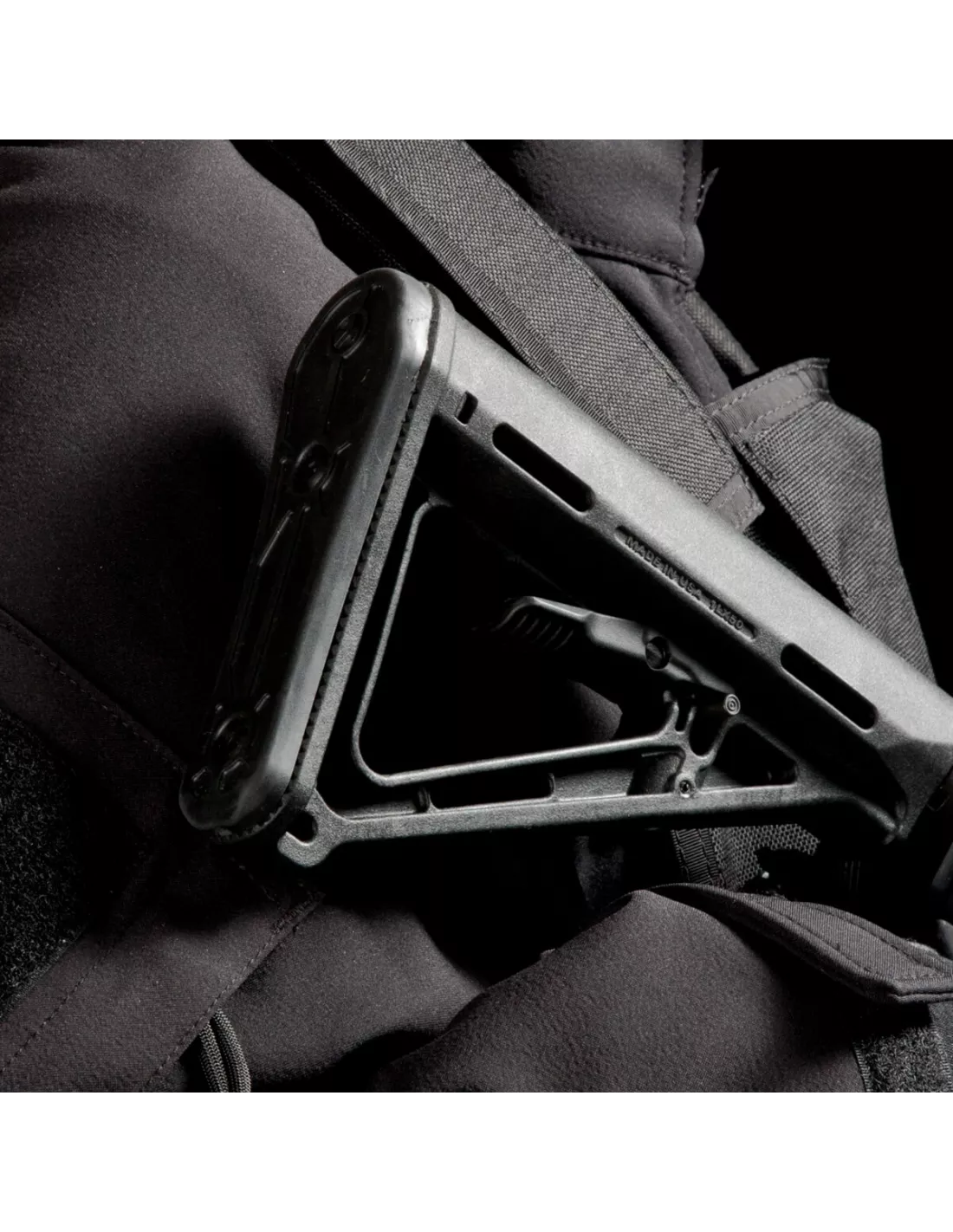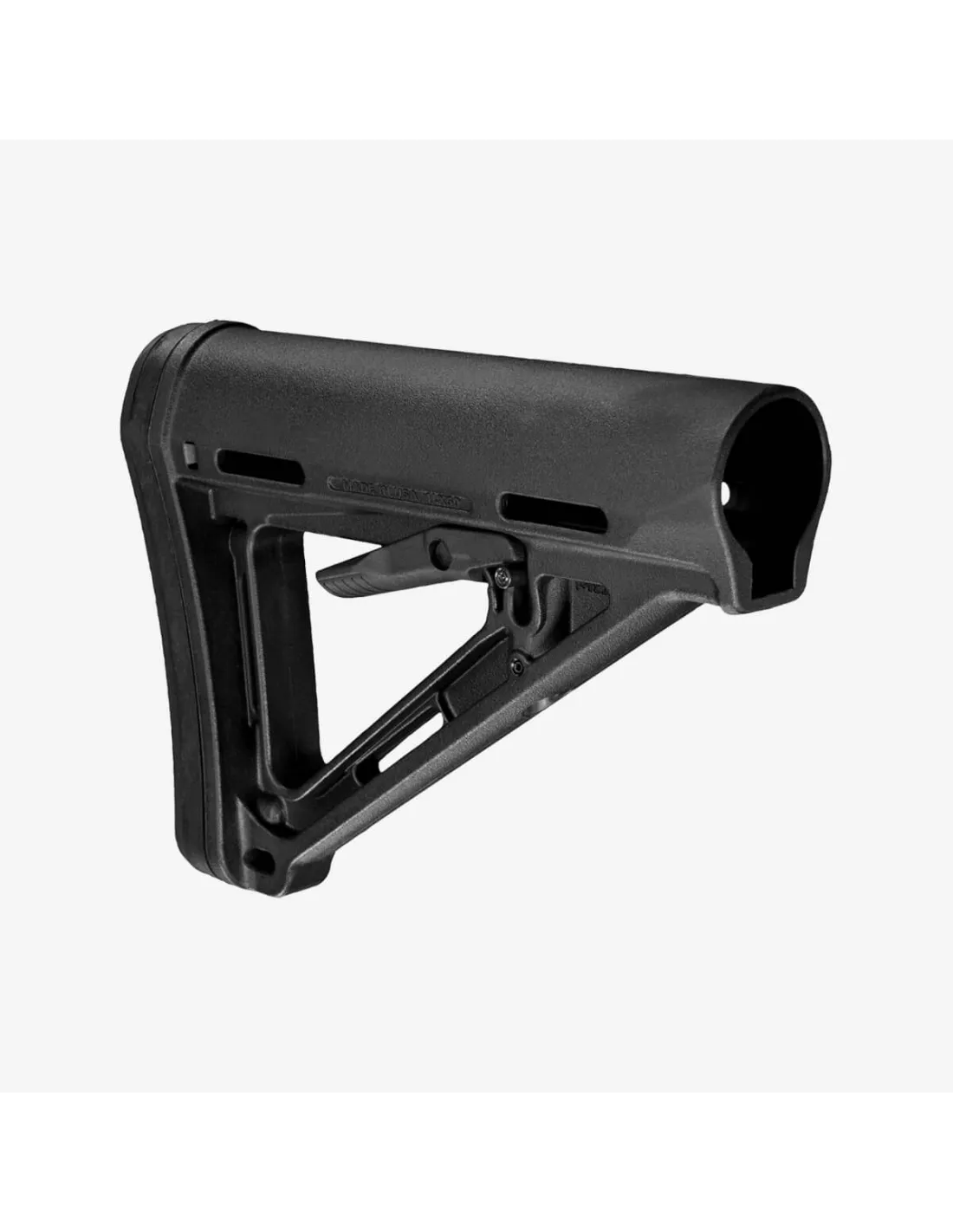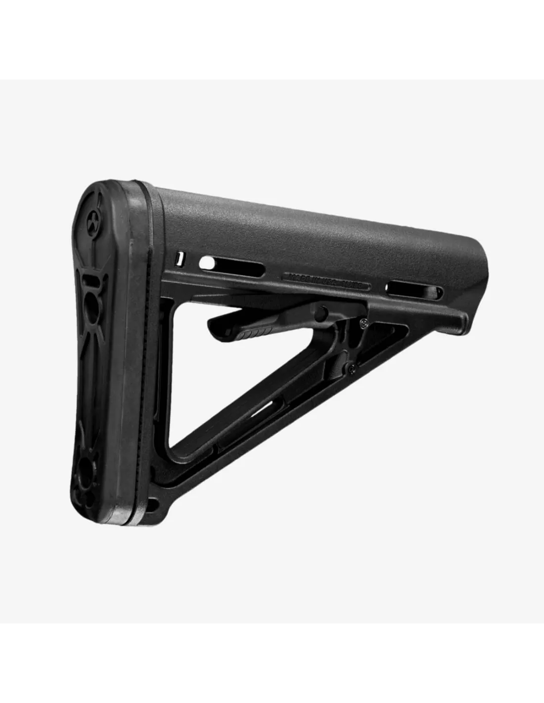 The MOE Carbine Stock features a slim, lightweight A-frame design that ensures smooth, snag-free handling in a simple and efficient package. Similar in concept to the CTR® stock but with reduced weight, it is specifically engineered for Commercial-Spec receiver extensions. It includes a shielded ambidextrous release latch for quick length-of-pull adjustments while minimizing the risk of accidental activation.