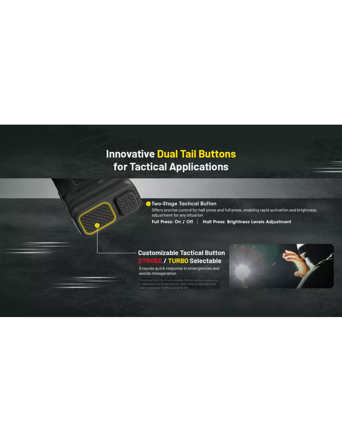 A dedicated customizable button adds even more flexibility, letting you choose between instant access to Turbo or Strobe mode. This makes the EDC25 especially practical for users who want quick access to maximum output or emergency signaling without cycling through regular modes.