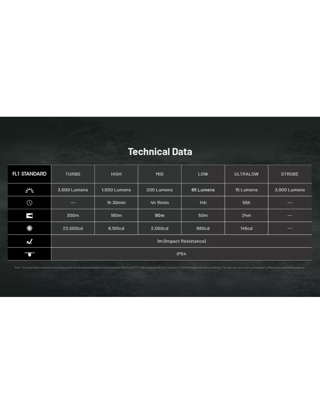 Operation is simple and intuitive. A full press of the Power Button turns the light on or off, while a half-press cycles through the four standard brightness levels. The flashlight also features mode memory, allowing it to return to the previously used brightness level when switched back on. For fast low-output use, Ultralow mode can be accessed directly when the light is off.