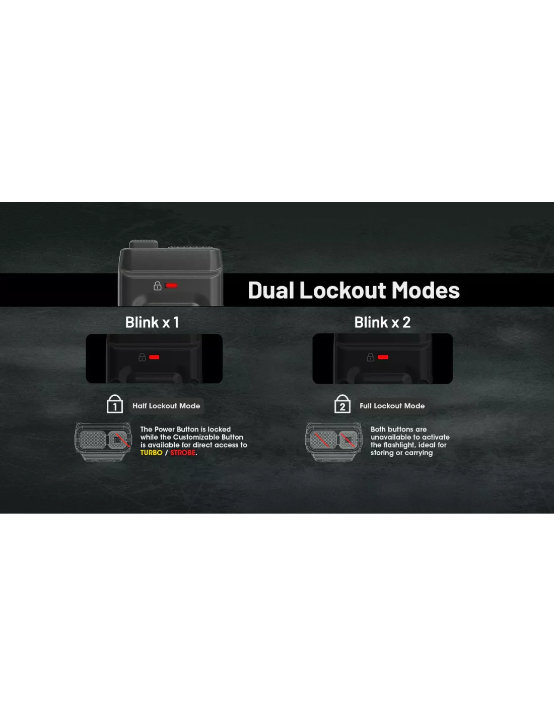 For safer everyday carry, the EDC25 includes two lockout modes. Half Lockout still allows access to Turbo or Strobe while helping prevent accidental activation, while Full Lockout fully disables the light for transport or storage.
