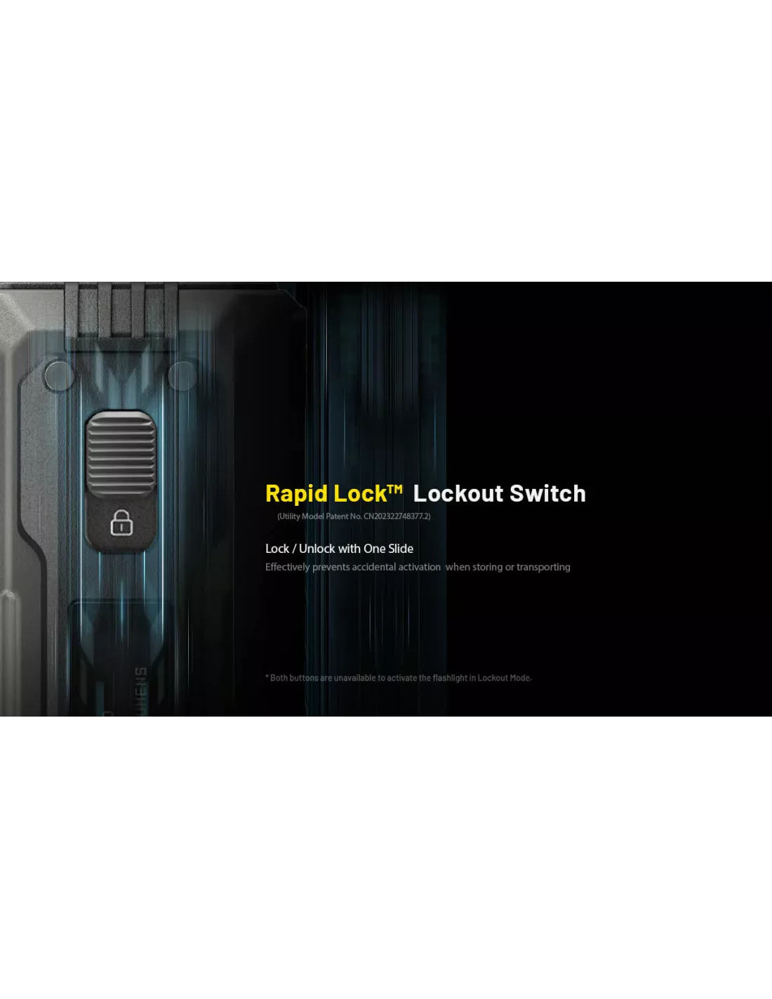 For safe everyday carry, the flashlight includes a dedicated Lockout switch to prevent accidental activation in a pocket or bag.