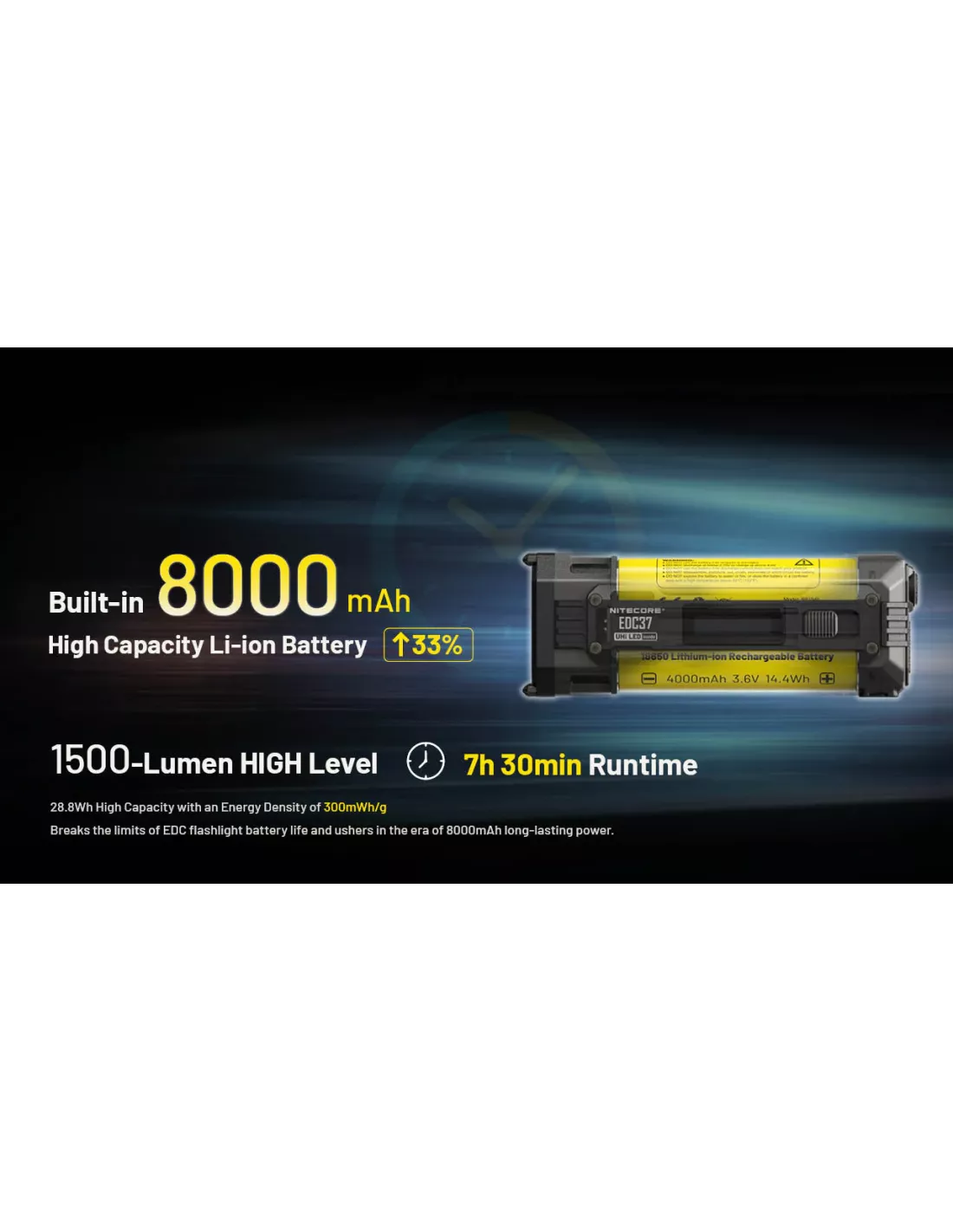 The Nitecore EDC37 is an ultra-powerful flat EDC flashlight designed for users who want extreme output, fast controls, and modern features in a compact everyday carry format. With a massive maximum output of 8000 lumens and a beam distance of up to 459 yards, it is one of the most powerful rechargeable EDC flashlights in its class.