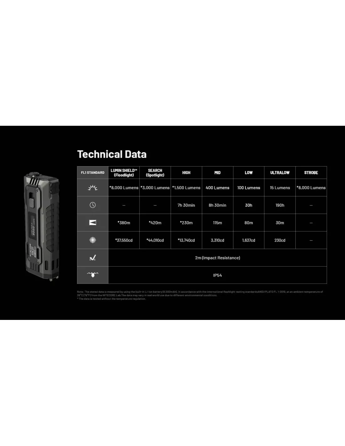 The EDC37 is built for versatility and quick access. It offers four standard brightness levels for everyday use, along with dedicated Search, Lumin Shield, and Strobe modes for high-intensity situations. Lumin Shield delivers the full 8000-lumen floodlight output for maximum area illumination, while Search mode provides a 3000-lumen spotlight for longer-range visibility and scanning.