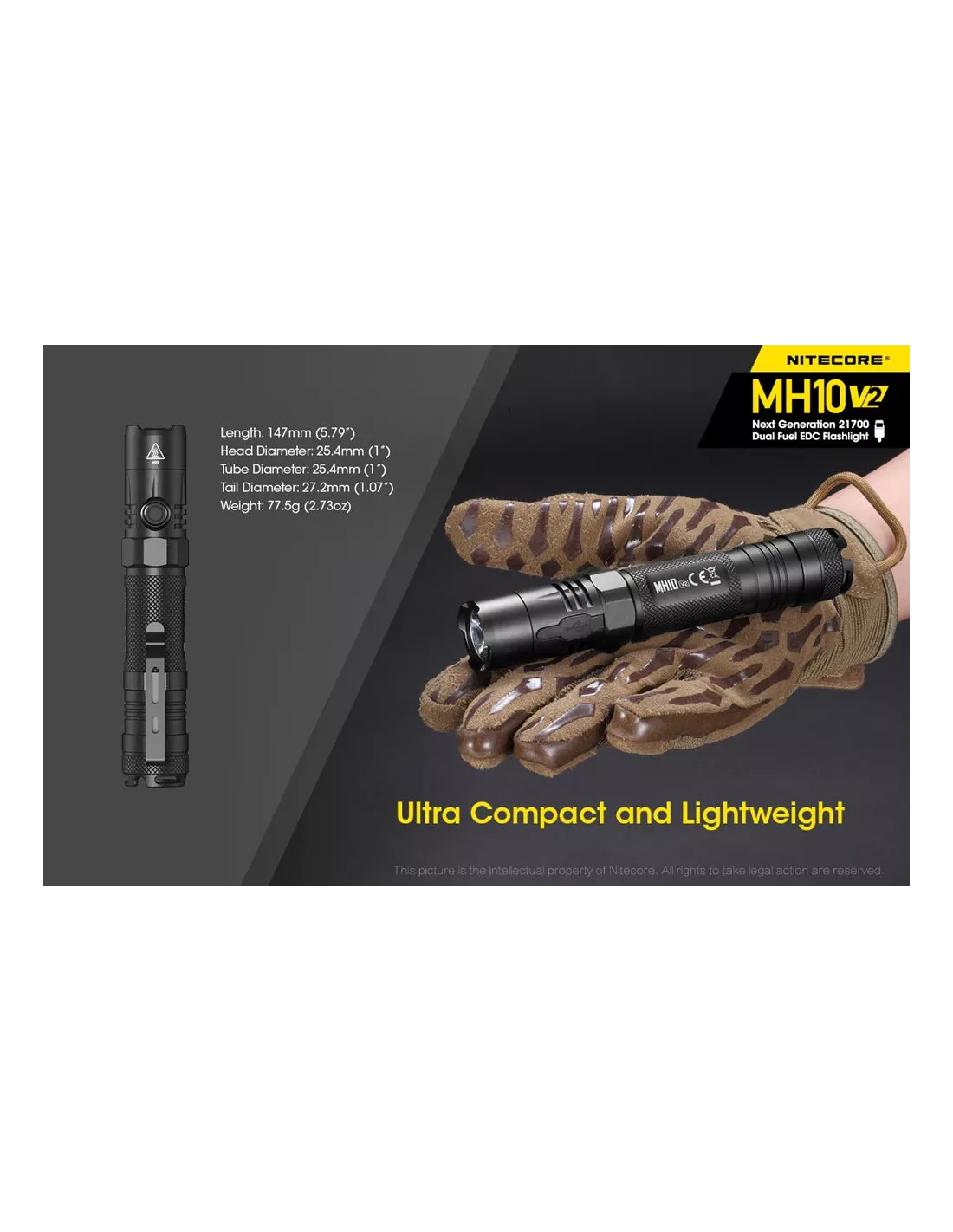 Nitecore MH10 v2 is a compact and versatile USB-C rechargeable flashlight built for everyday carry, duty use, outdoor activities, work, patrol, and emergency preparedness. As the upgraded version of the classic MH10, it delivers improved brightness, longer runtime, and more flexible carry options in a durable and dependable design.