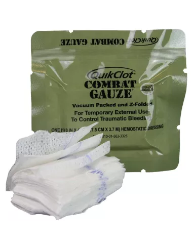 QuikClot Combat Gauze Z-Fold is an improvement on the original QuikClot Combat Gauze. As a result feedback from the US Military, Z-Medica improved the QuikClot Combat Gauze product by making it z-folded, vacuum packed, and with an x-ray detectable strip.