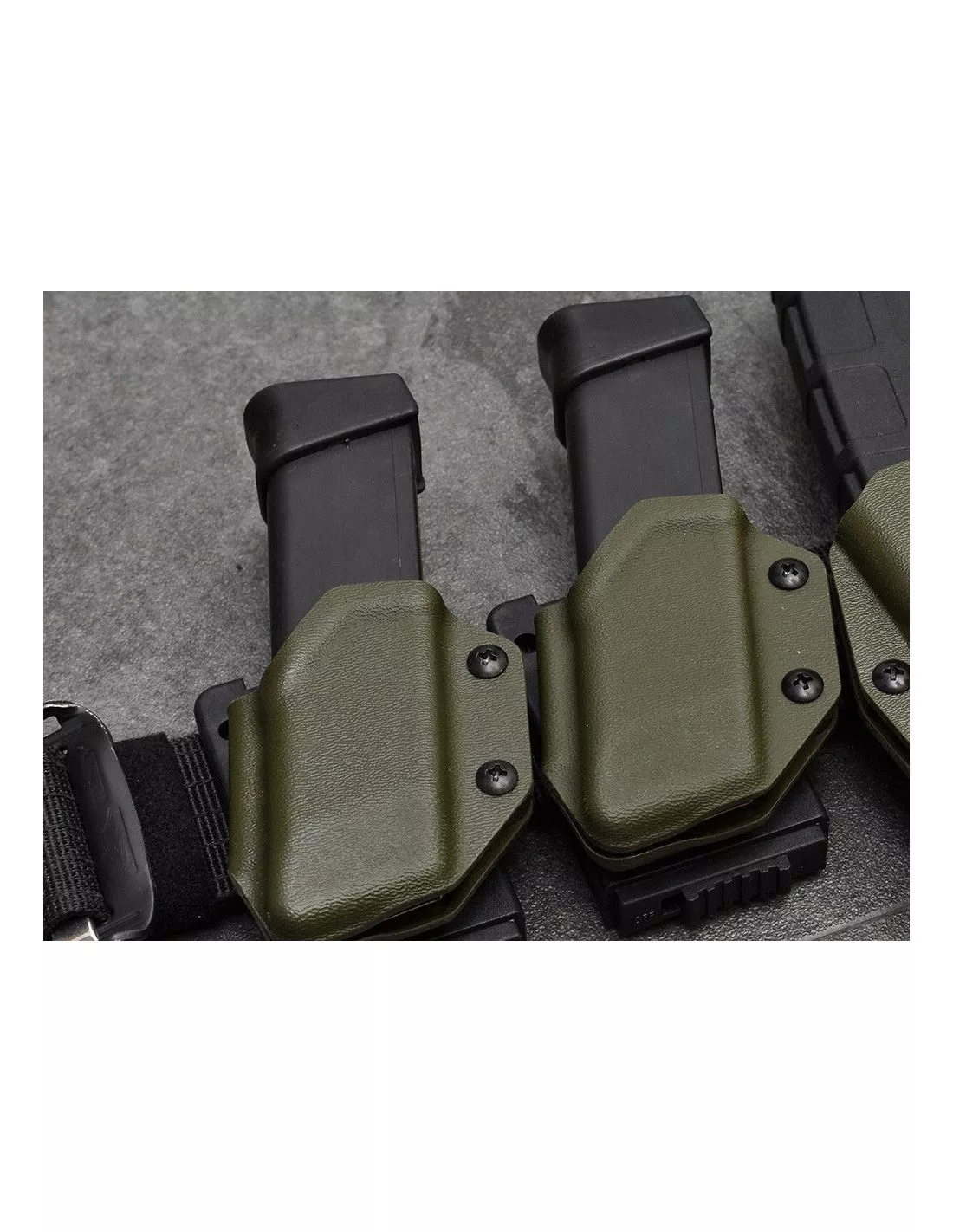 Battle Gnome Solutions offers a range of pistol mag carriers for different magazine types. BGs pistol mag carriers are very versatile, feature full adjustability and are precision made by vacuum forming 2 mm Kydex T on a CNC machined mold.