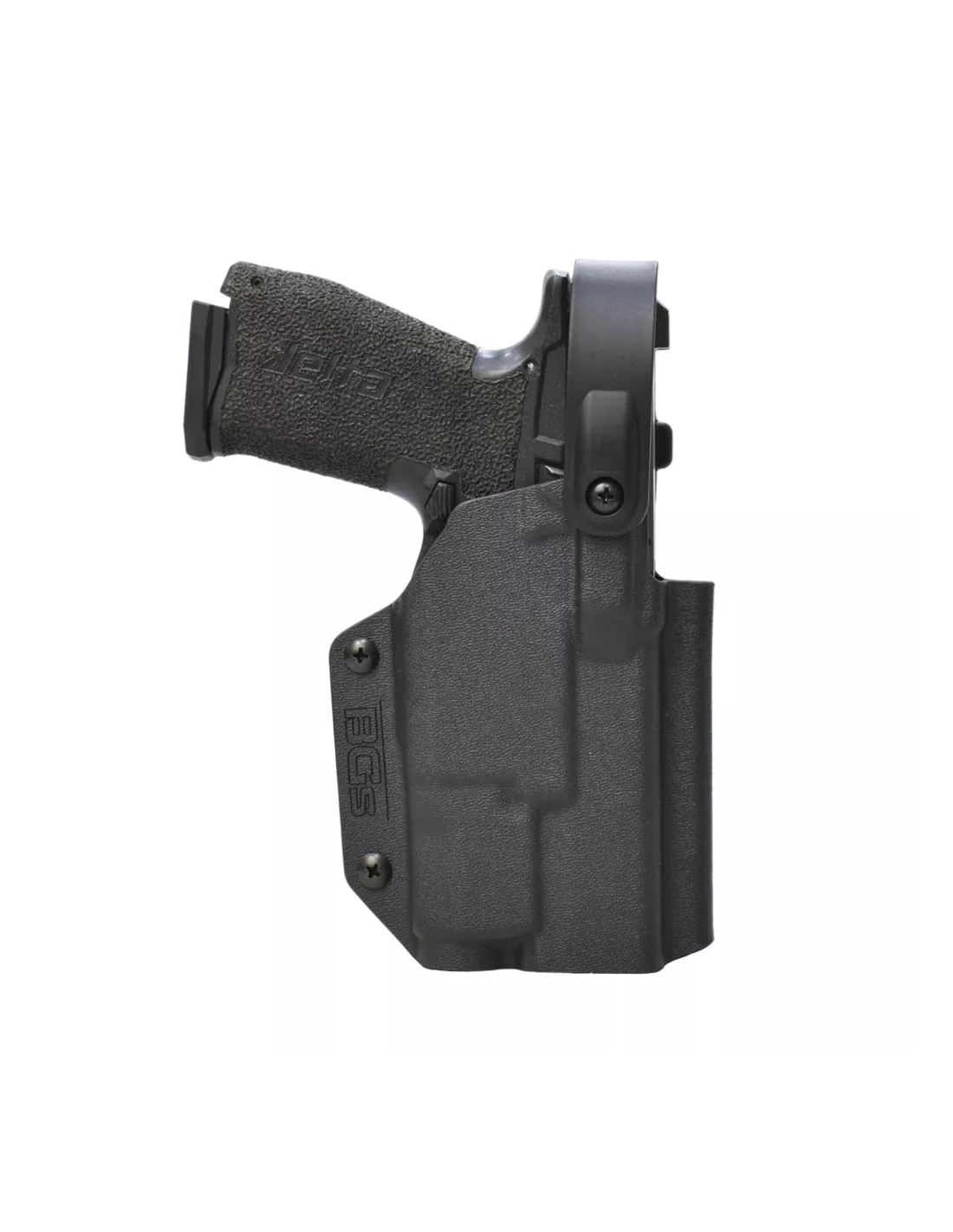 "Battle Gnome Solutions Kane is a DUTY HOLSTER designed for professional use, available in standard LEVEL II or upgraded HYBRID LEVEL III configuration. Holsters are precision made by vacuum forming Kydex T on CNC machined molds and are designed to be compatible with:
