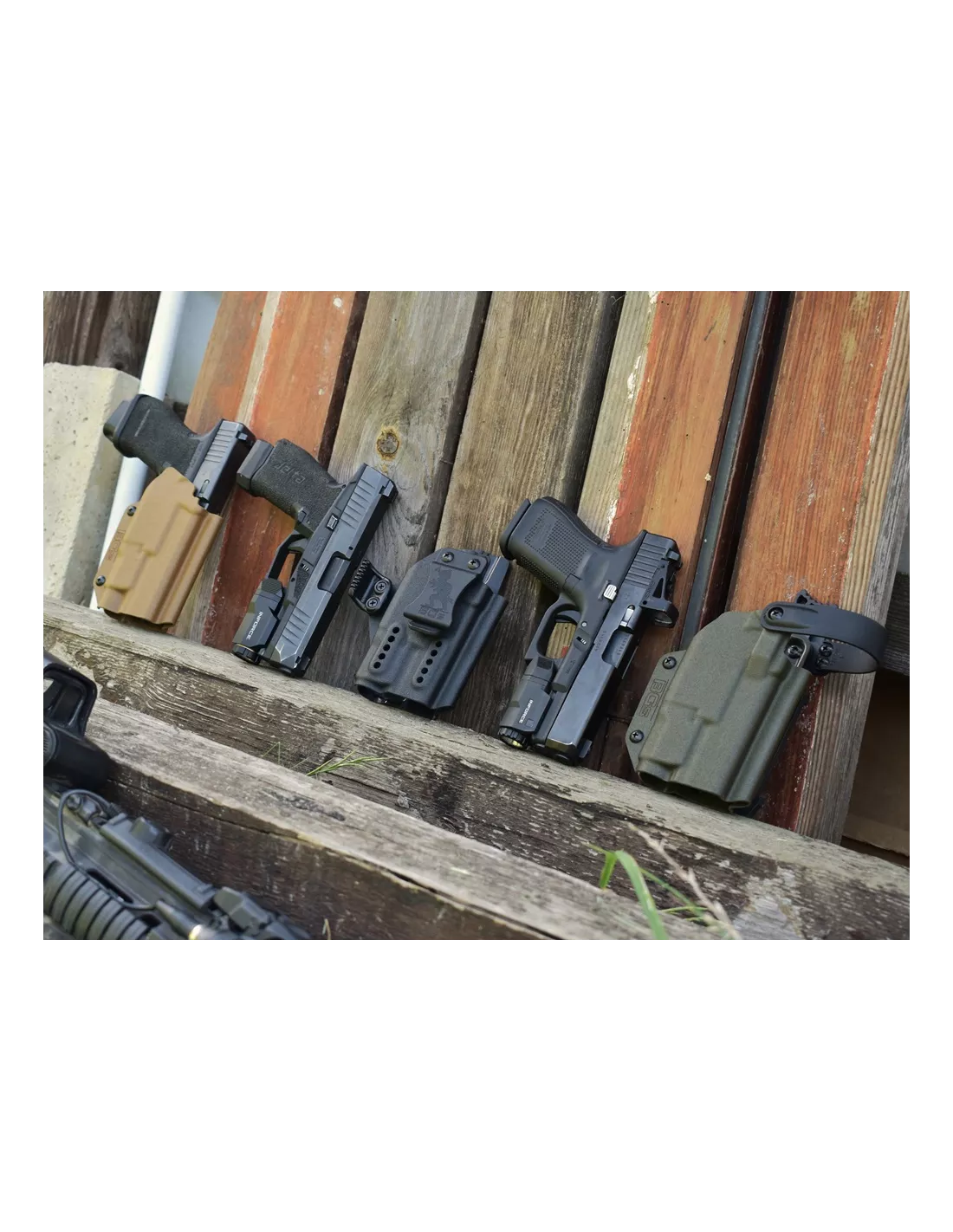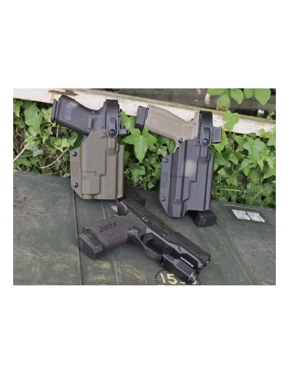 Fits Glock 19 and Glock 45 with Inforce WILD1 or APLc weapon light attached. Also works with Arex Delta M/X. Glock 19 slide-length cut.