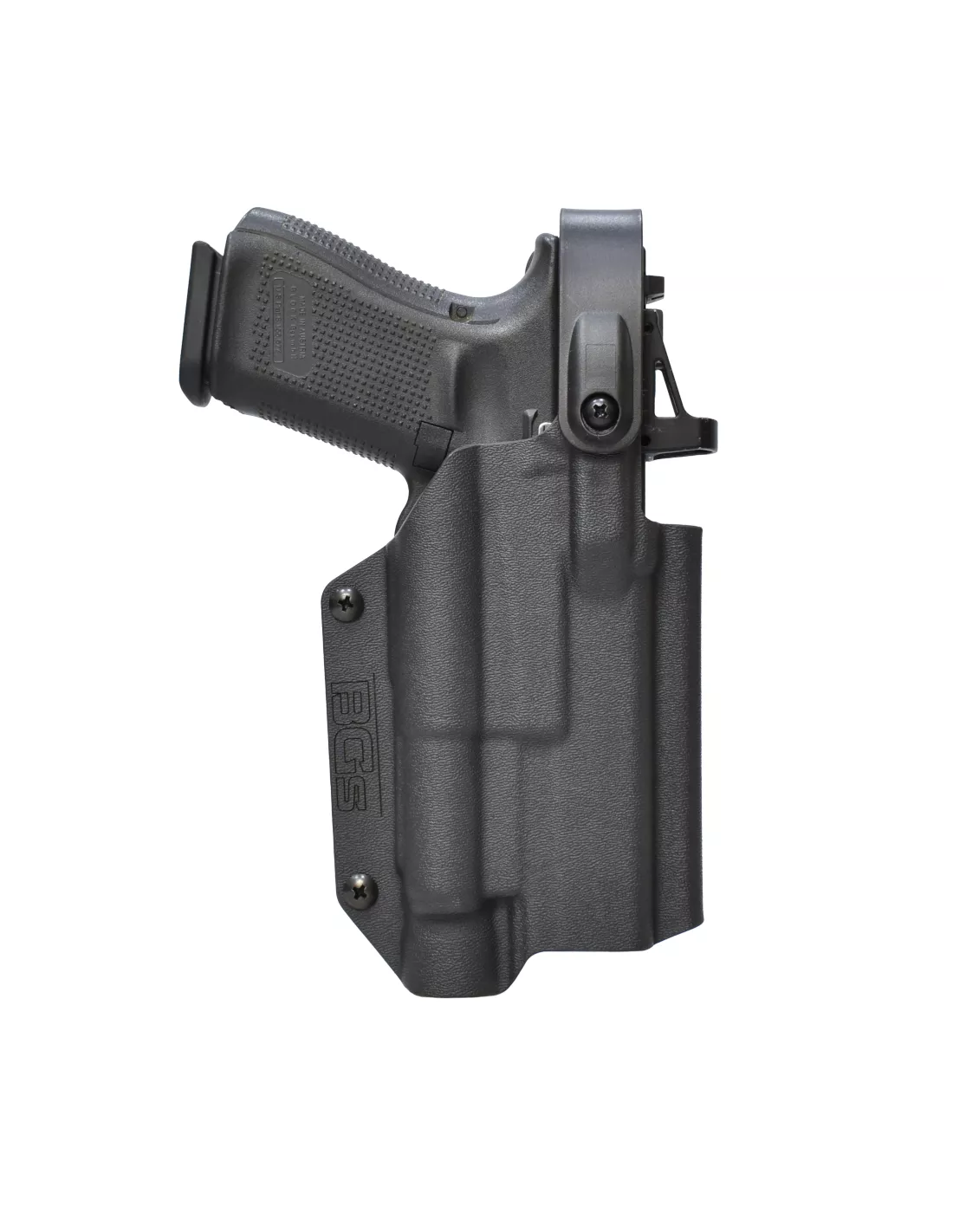 Battle Gnome Solutions Kane is a DUTY HOLSTER designed for professional use, available in standard LEVEL II or upgraded HYBRID LEVEL III configuration. Holsters are precision made by vacuum forming Kydex T on CNC machined molds and are designed to be compatible with: