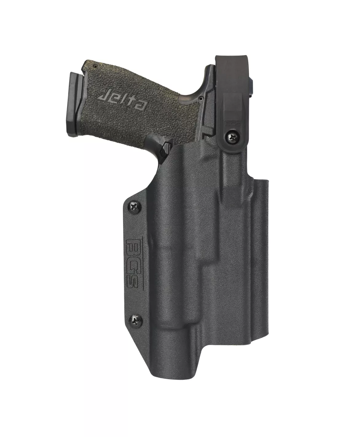 Battle Gnome Solutions Kane is a DUTY HOLSTER designed for professional use, available in standard LEVEL II or upgraded HYBRID LEVEL III configuration. Holsters are precision made by vacuum forming Kydex T on CNC machined molds and are designed to be compatible with: