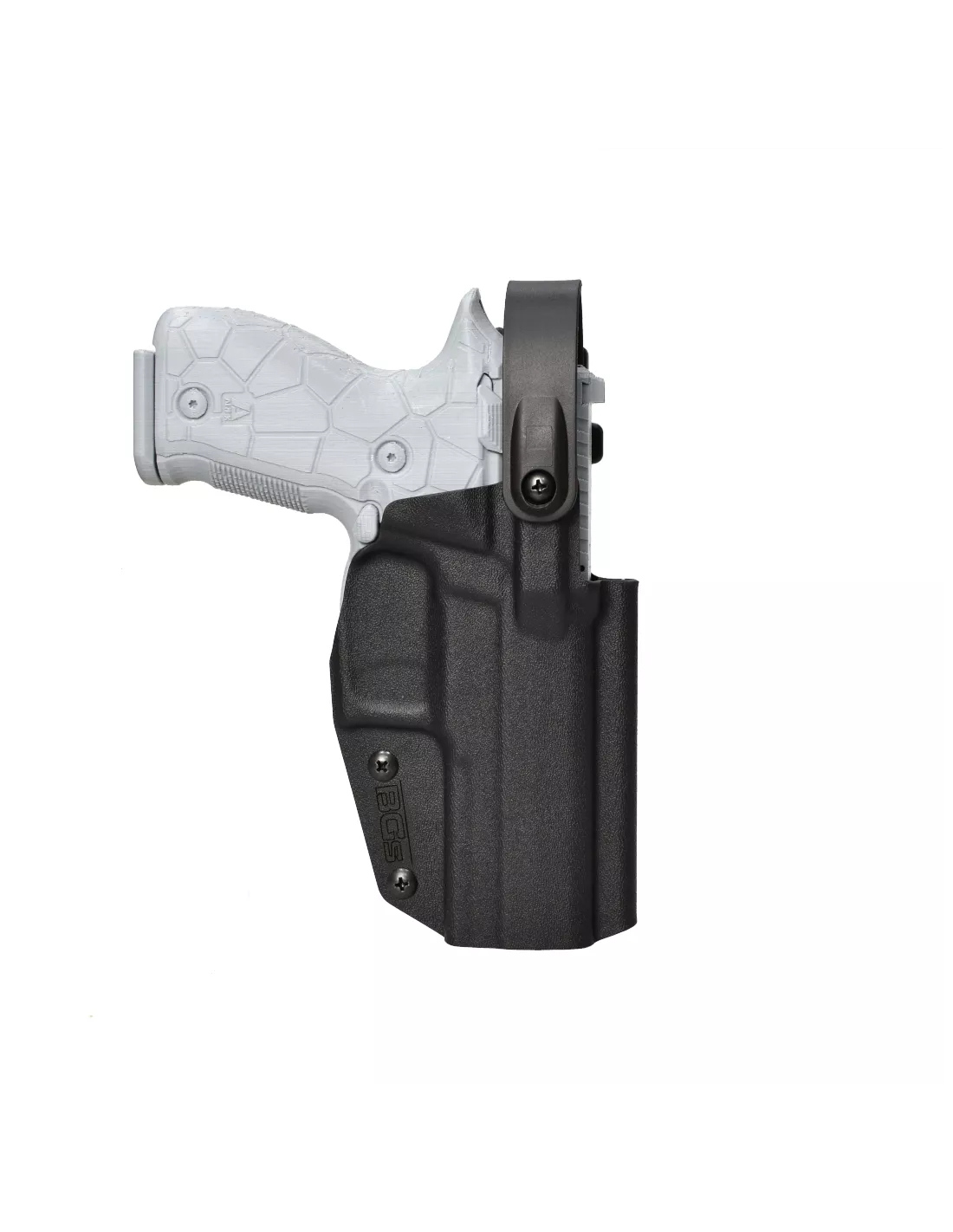 Battle Gnome Solutions Kane is a DUTY HOLSTER designed for professional use, available in standard LEVEL II or upgraded HYBRID LEVEL III configuration. Holsters are precision made by vacuum forming Kydex T on CNC machined molds and are designed to be compatible with: