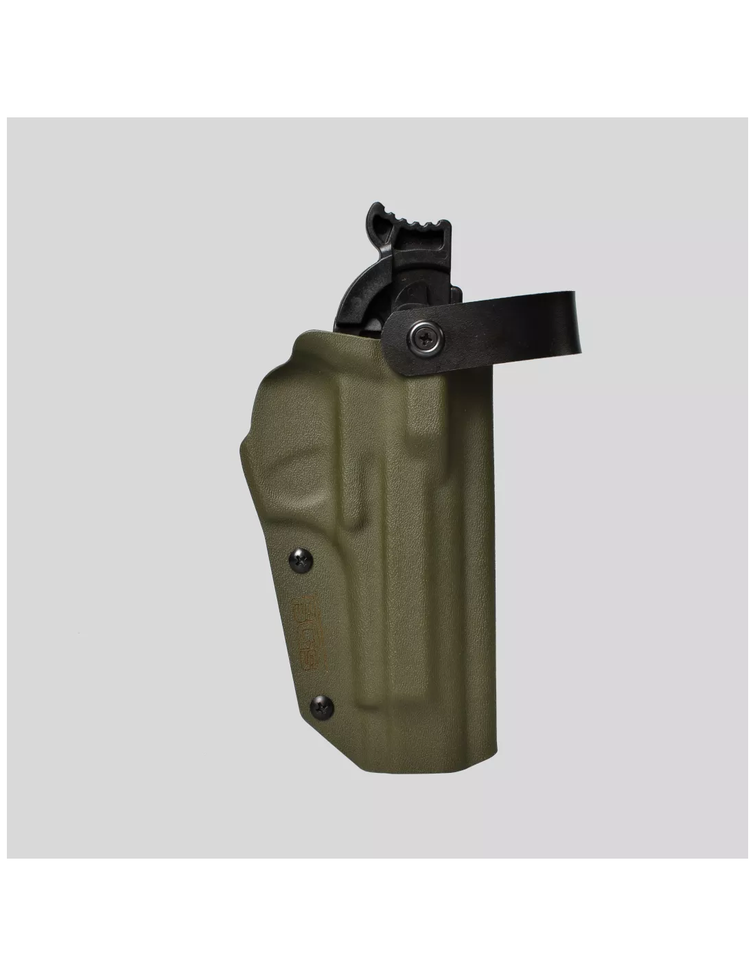 "Battle Gnome Solutions Kane is a DUTY HOLSTER designed for professional use, available in standard LEVEL II or upgraded HYBRID LEVEL III configuration. Holsters are precision made by vacuum forming Kydex T on CNC machined molds and are designed to be compatible with: