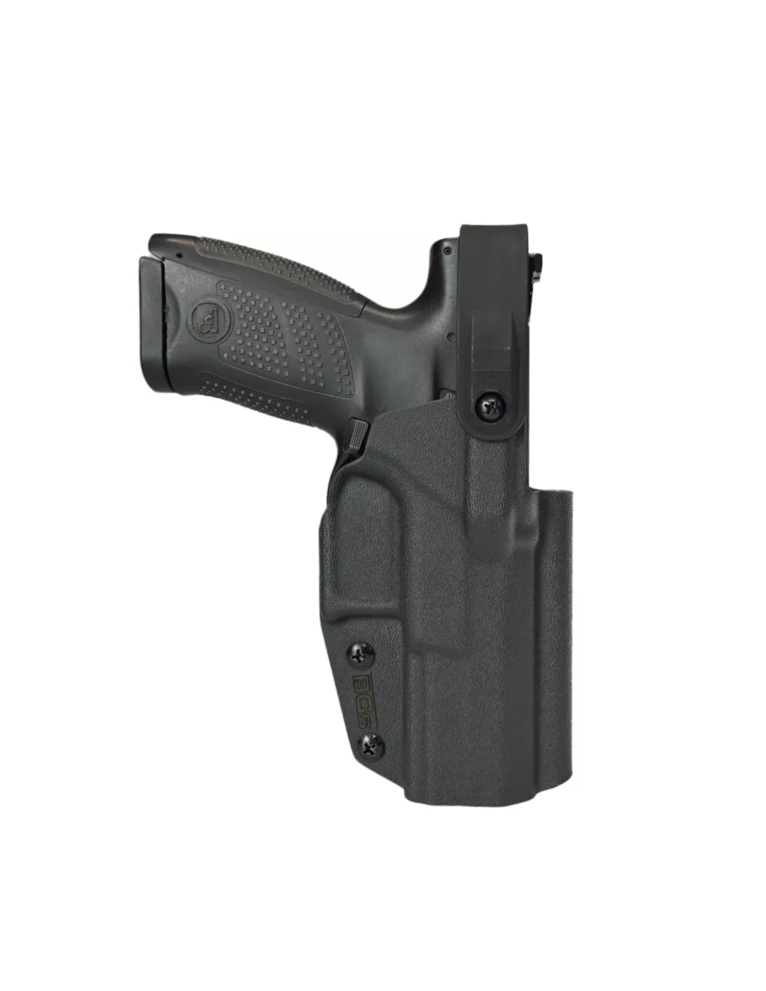 For optimal draw and security, the PASSIVE RETENTION IS ADJUSTABLE with the two screws on the front of the holster.