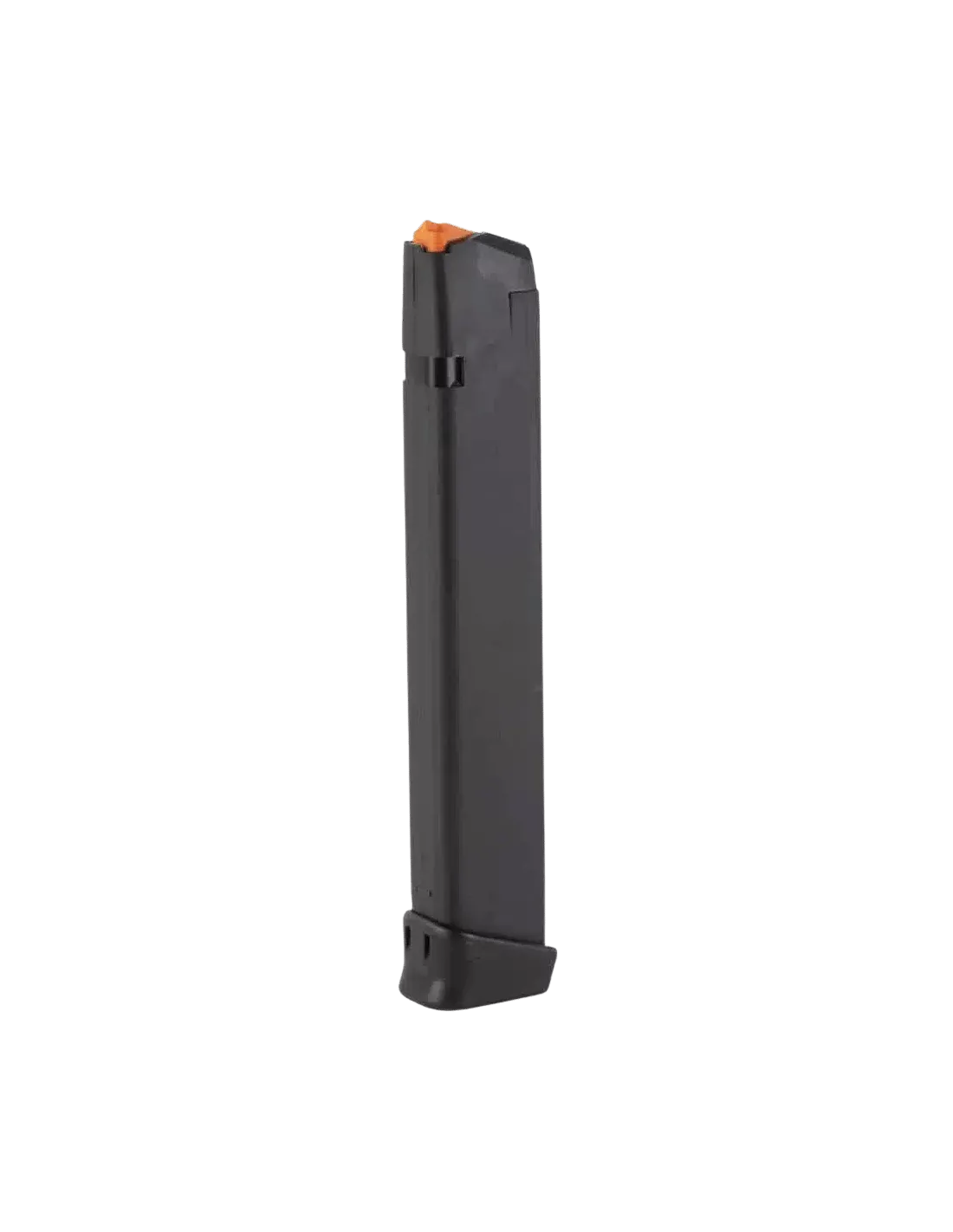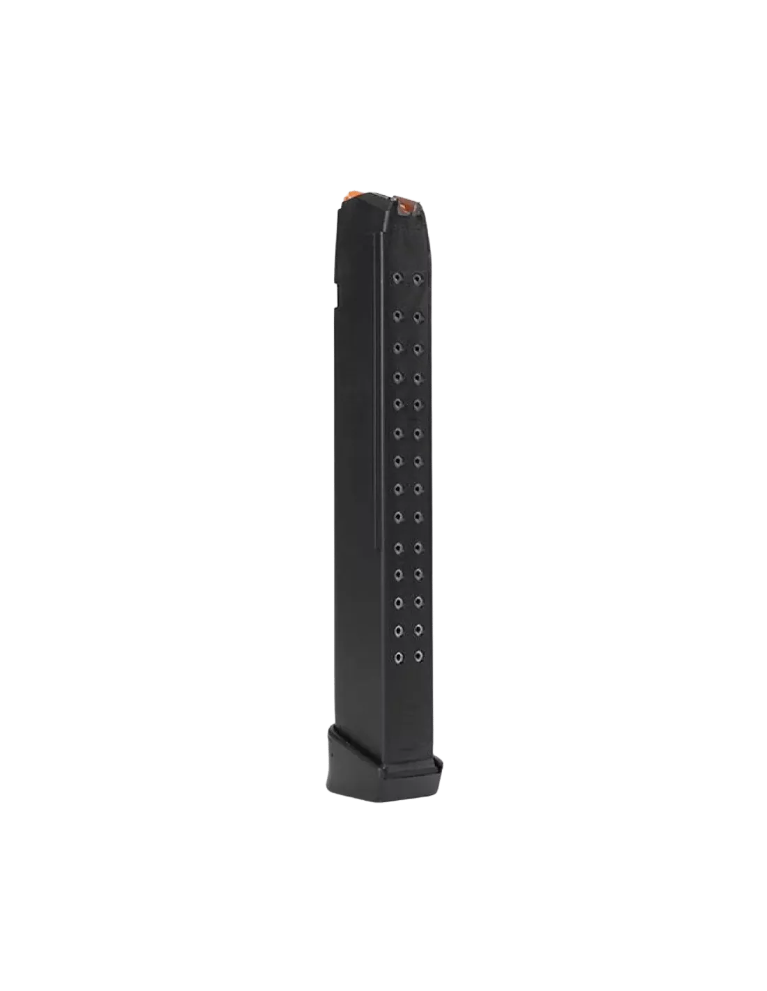 A durable steel reinforced polymer 9mm magazine with round count window.