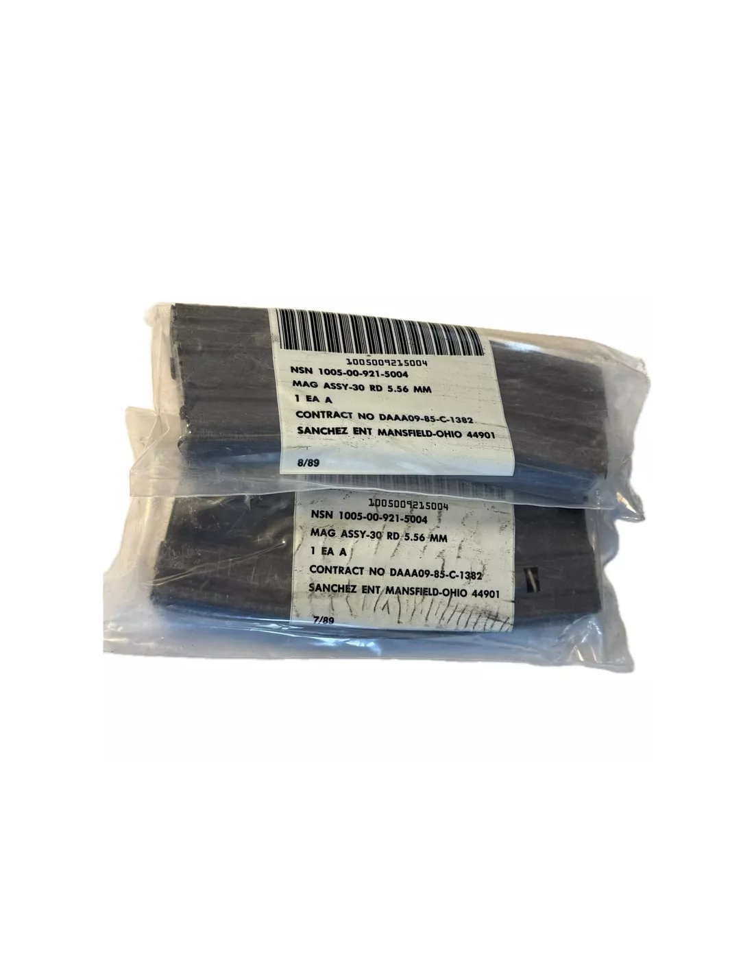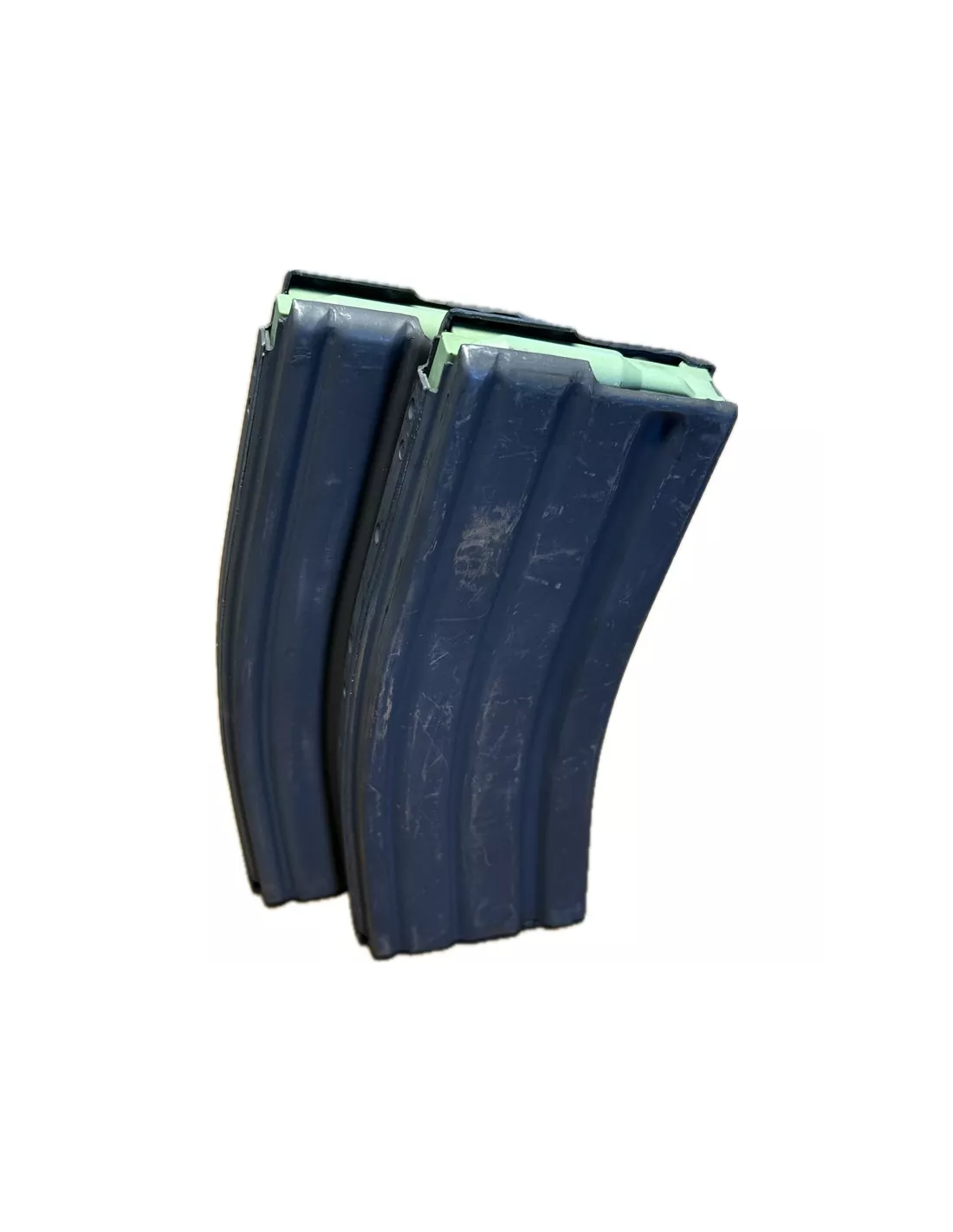 Each magazine is aluminum, STANAG-pattern, with the correct green USGI follower – the improved follower that solved most of the issues associated with the earlier black followers. They are military surplus, packed in 1989 and stored ever since.