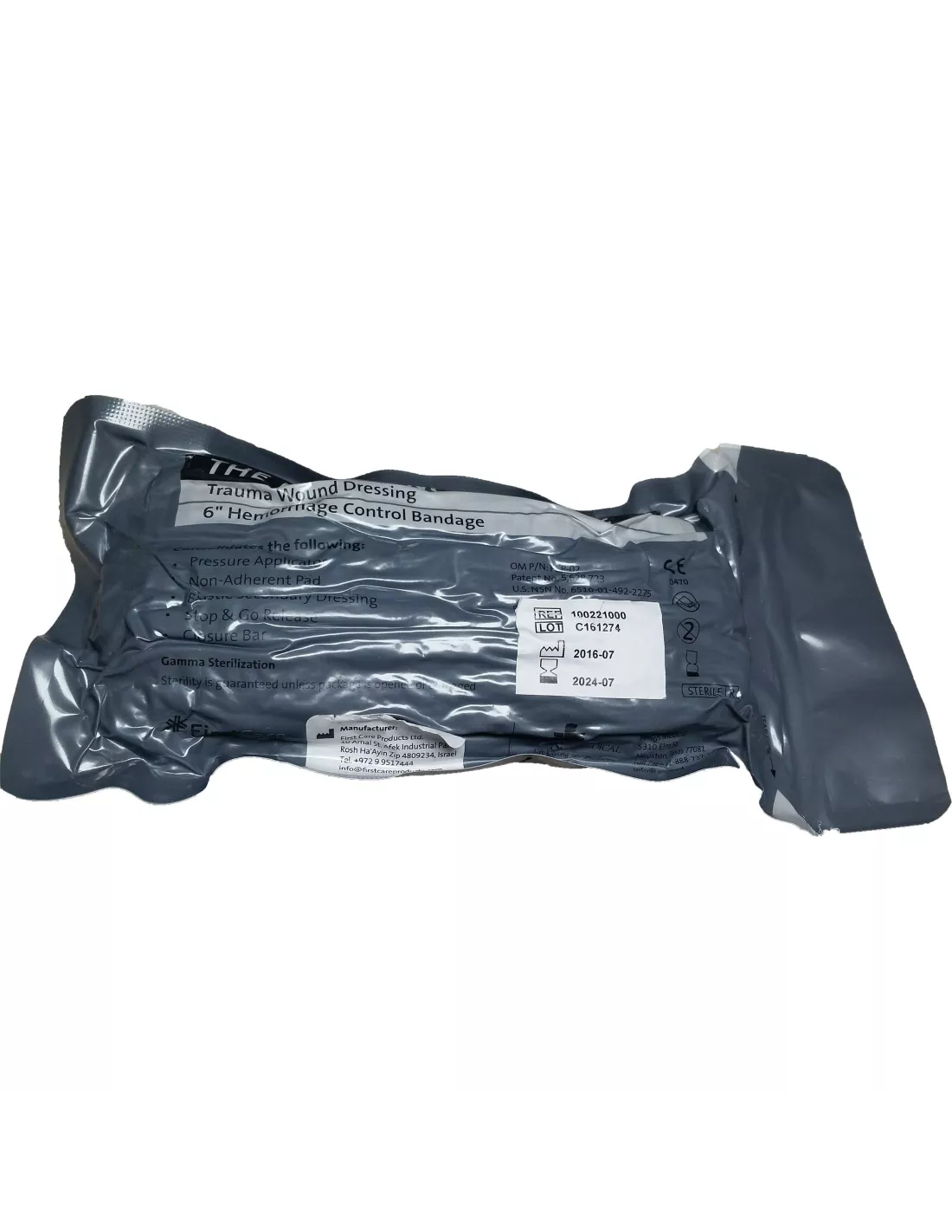 6" Israeli bandage is a specially designed first-aid device that is used to stop bleeding from hemorrhagic wounds caused by traumatic injuries in pre-hospital emergency situations.