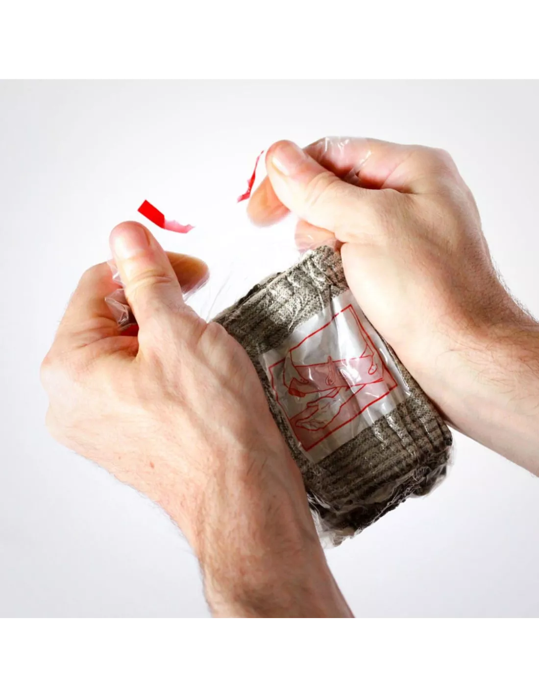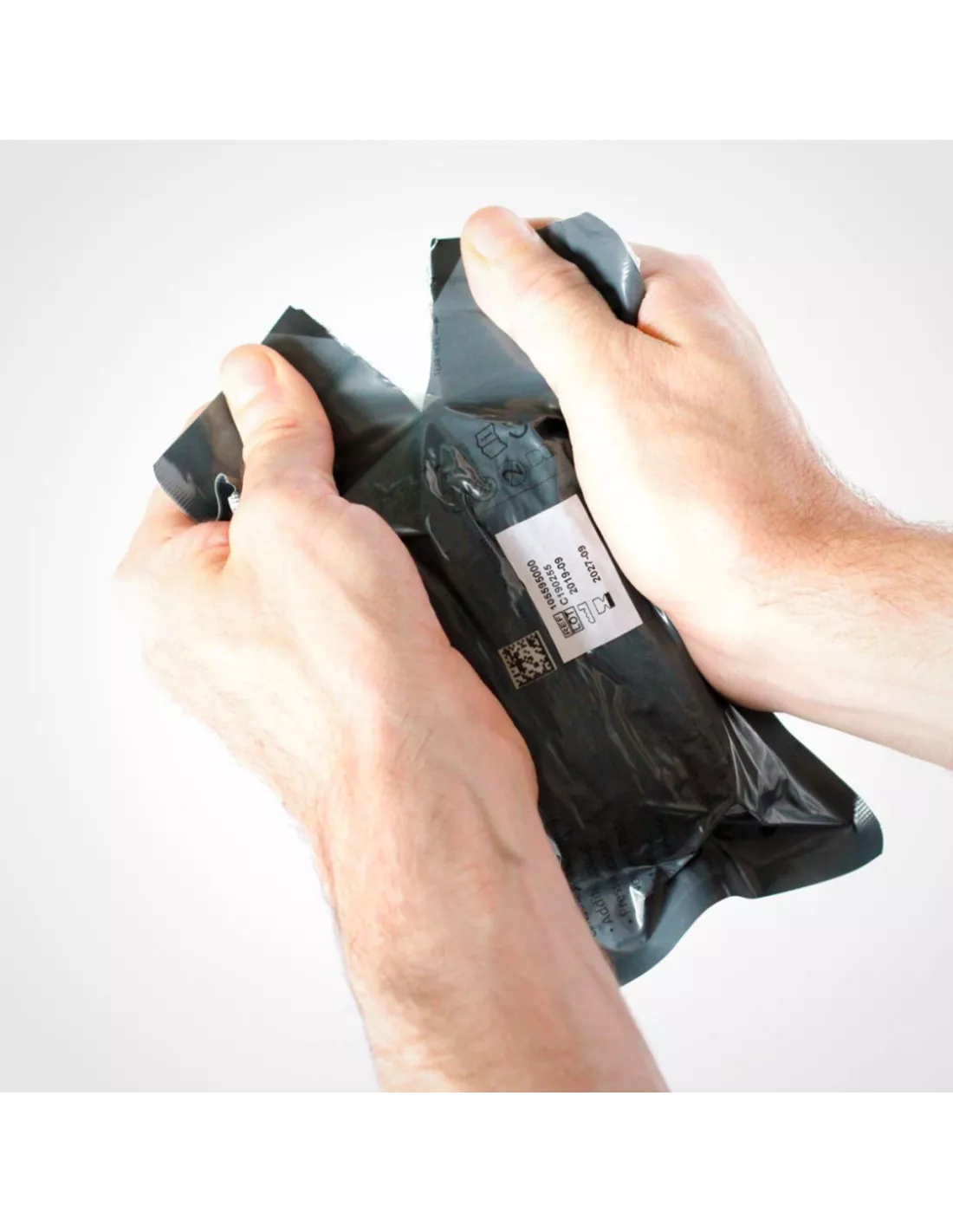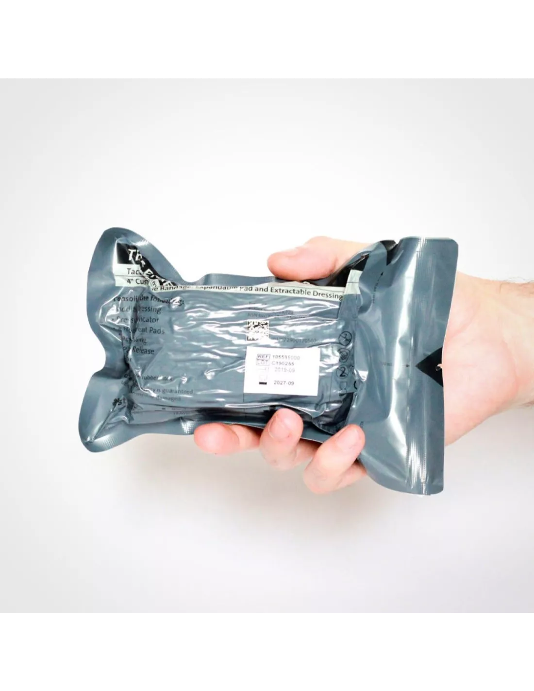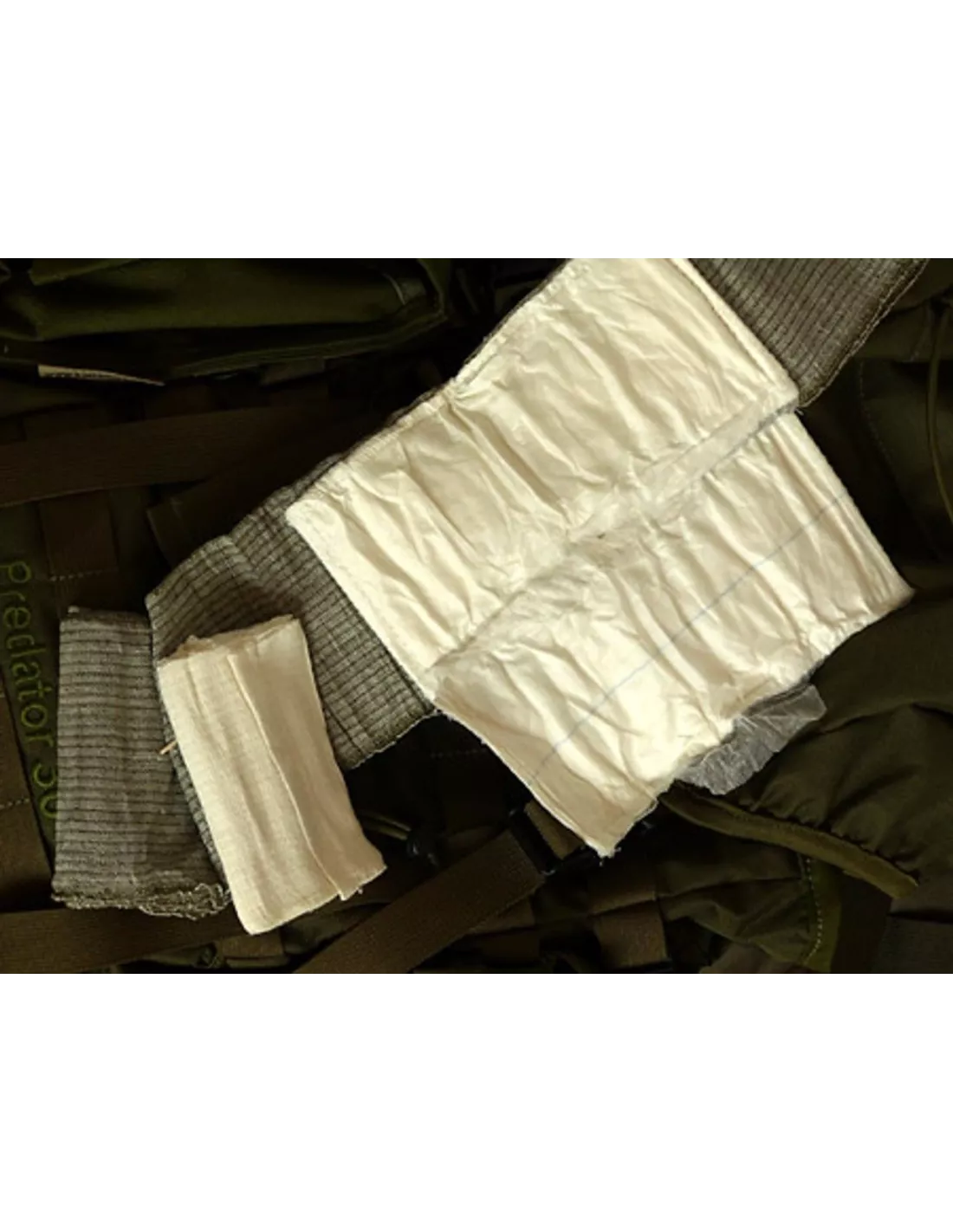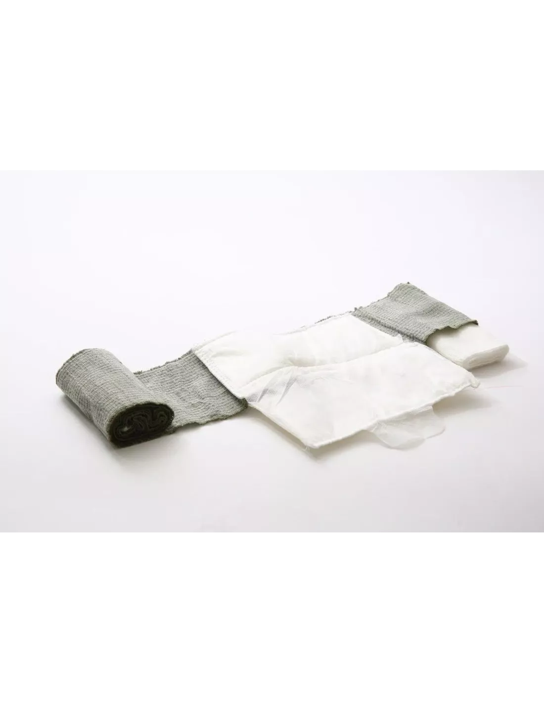 This all-in-one bandage reduces the amount of equipment military personnel carry and is suitable for first aid combat emergency kits. The bandage is easily applied by untrained personnel and makes an ideal personal field dressing for every soldier.