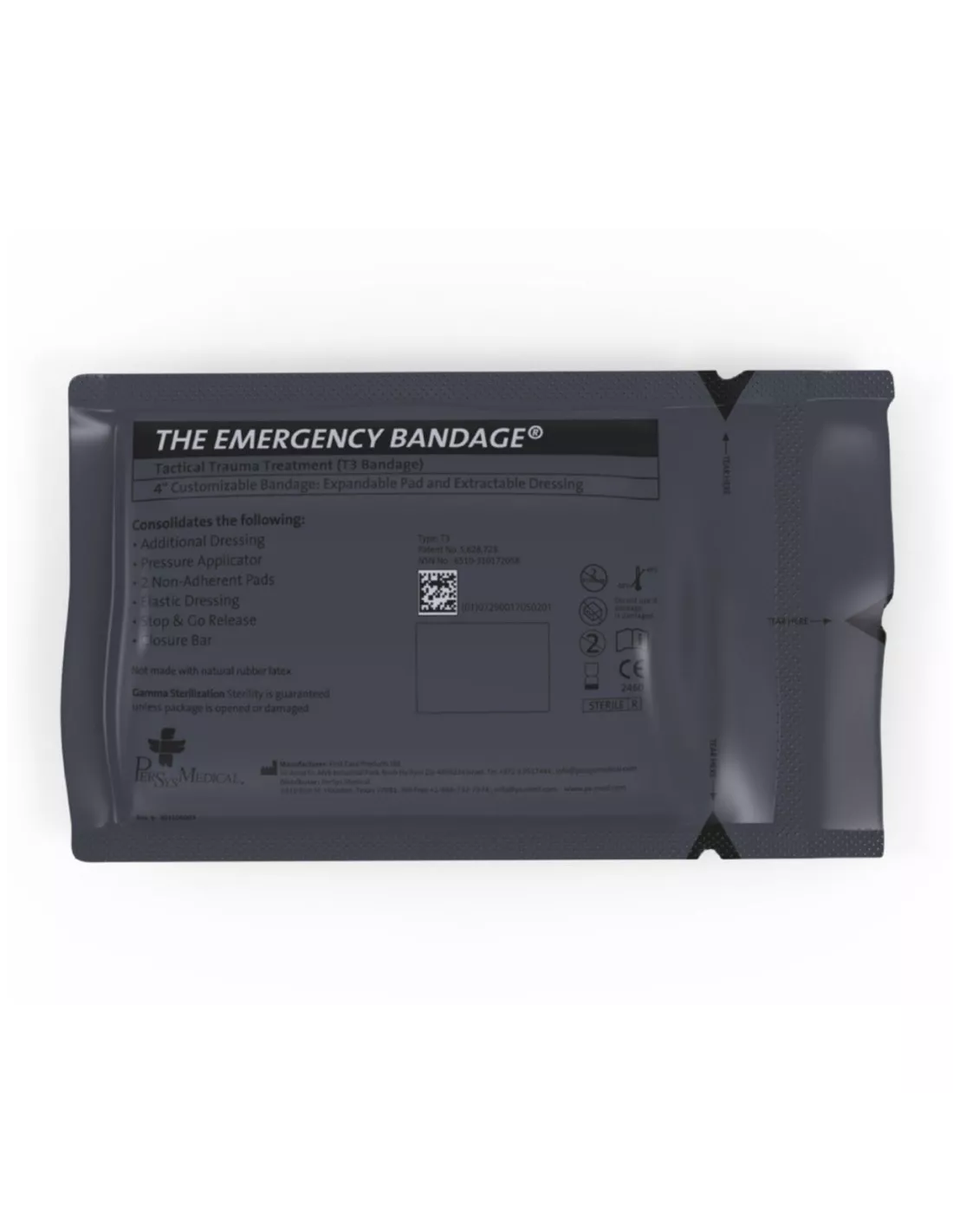 The T3 Bandage provides a multifunctional solution to a wide range of injuries in a compact package. While facilitating the treatment of conventional wounds, abdominal and large wounds, amputations, entrance/exit wounds and more, the bandage allows cleaning, packing, coverage and compression of single and multiple wounds.