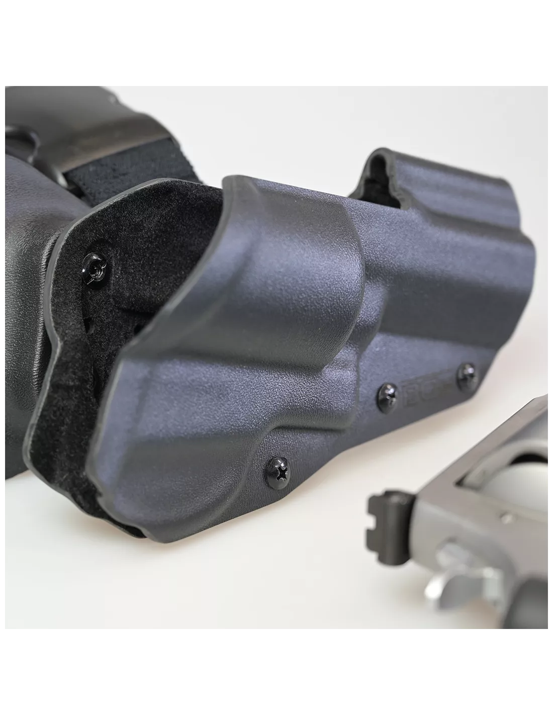 Made from 3 mm thick Kydex, with a soft lining inside to help protect the surface finish of the firearm. Holsters come with mounted mid-ride platform and leg strap.