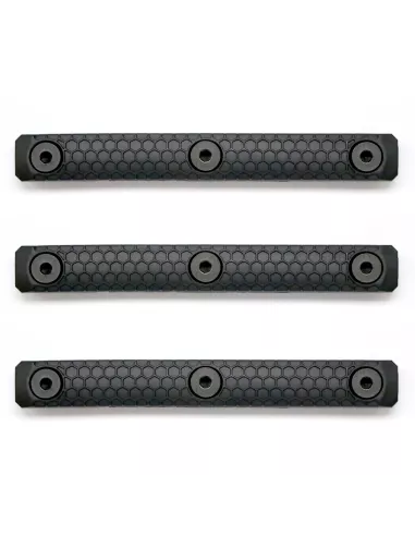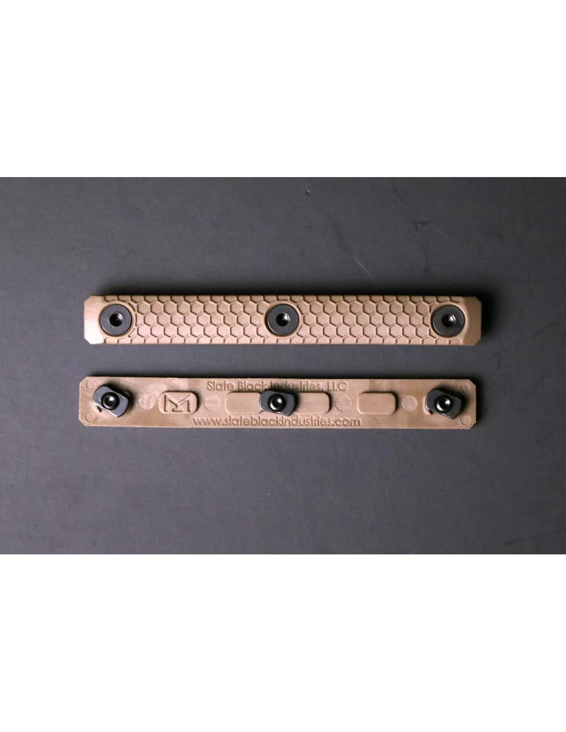 Slate Grips are a drop in/screw on upgrade to any grip, rail or otherwise MLOK compatible system. The thin profile and raised texture offer an enhanced gripping surface for the user. These panels boast durable steel hardware and extra MLOK lugs (over some similar designs) for increased durability and security. The grip material maintains the ability to withstand high temperatures, providing the user with insulation. Designed by military and competition shooters, Slate Grips will interface well with many of the popular hand stops, vertical grips, and angled grips available on the market today.