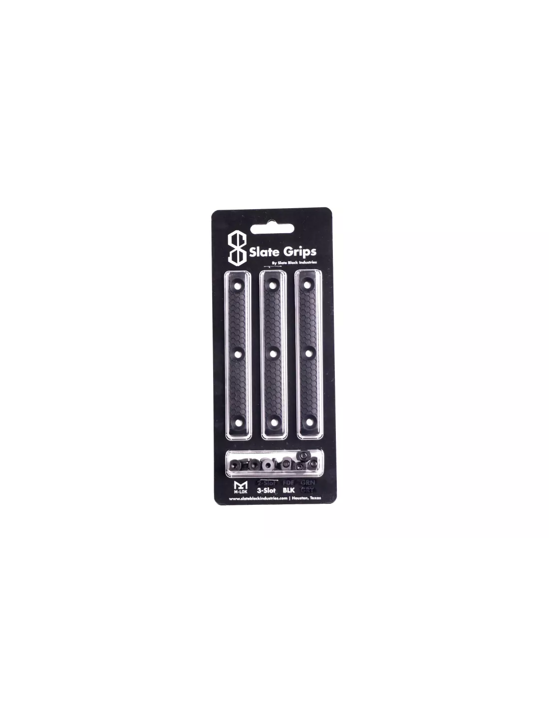 Available in 2 slot or 3 slot variety, Slate Grips are sold in packs of three (3). Material: fiber reinforced high-temp polymer.