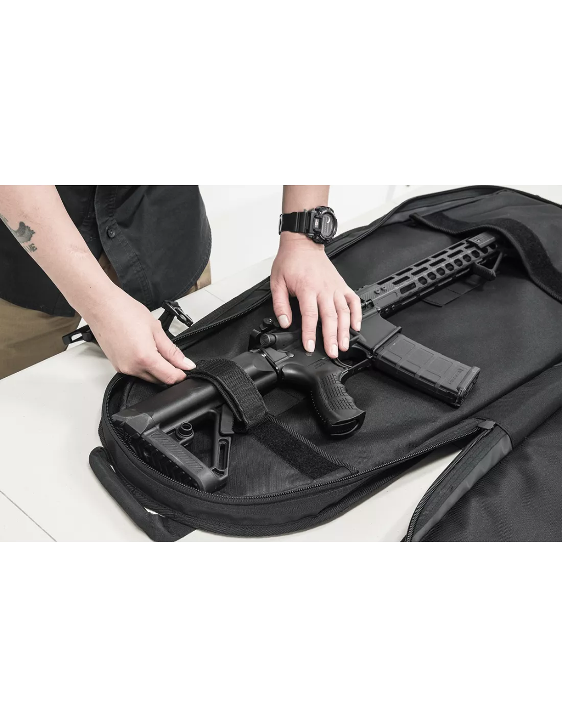 - Fully Adjustable Hook-and-loop Retention Strap and Barrel Catch Pockets Keep Firearm Secured During Transportation