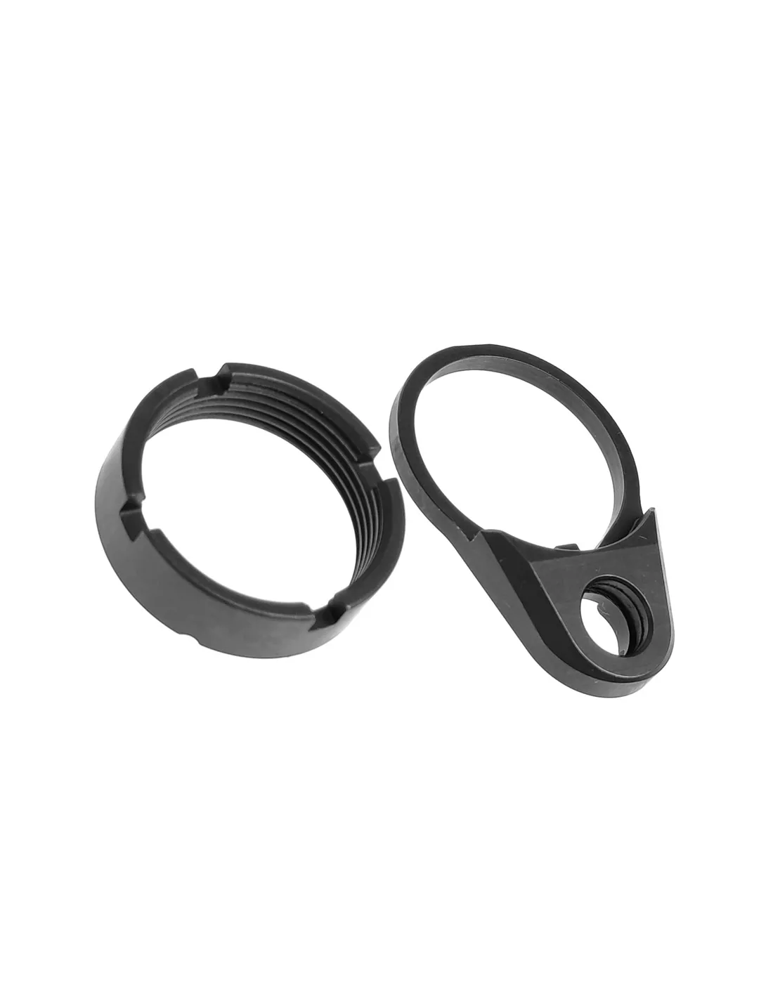 AR15 castle nut with a QD collar, finished with black phosphate coating.