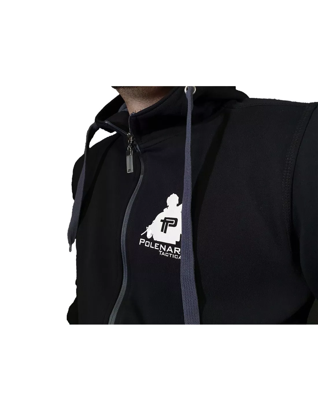 A quality made black hoodie from James&Nicholson. It features high hood design with chin protect, full-zip, kangaroo pockets and flatlock seams.